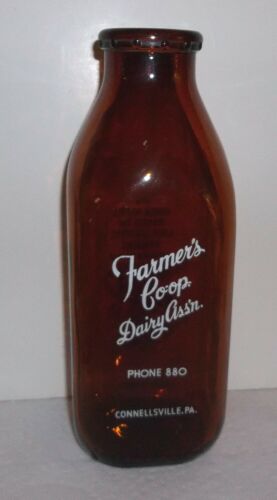 Farmer''s Co-op Dairy Ass''n Connellsville PA. Amber Pyro Quart Insist On Glass