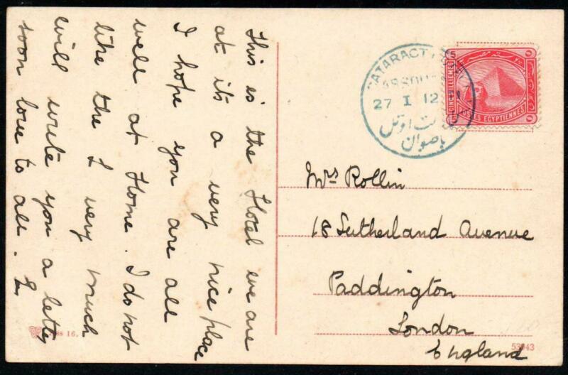 Title (ebay affiliate link): SoD Egypt 1912 PPC of CATARACT HOTEL ASSOUAN posted from hotel to London