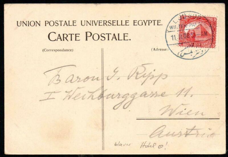 Title (ebay affiliate link): SoD Egypt 1908 PPC(Thebes Rest House) sent WINTER PALACE - Vienna - blue/blk cds
