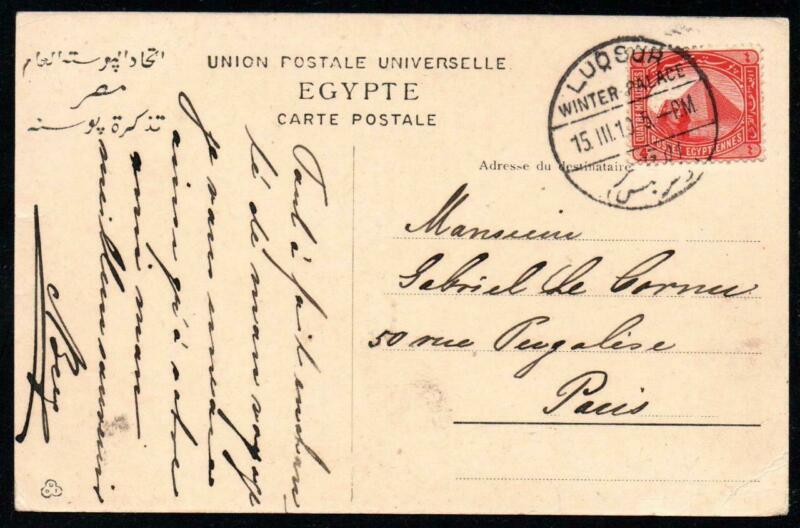 SoD Egypt 1910 PPC (Bisharins) posted from LUQSOR WINTER PALACE to Paris