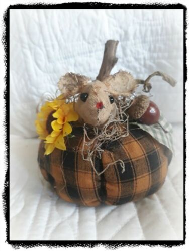 Primitive Handmade`Mouse Sunflower Acorn Pumpkin shelf Sitter/Pin Cushion