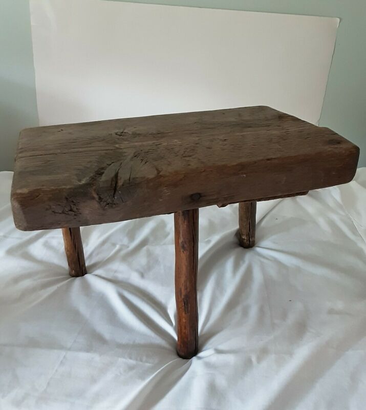 Title (ebay affiliate link): Antique Primitive Rustic Farm Barn Wooden Milking Stool 3 Legged Hand Crafted