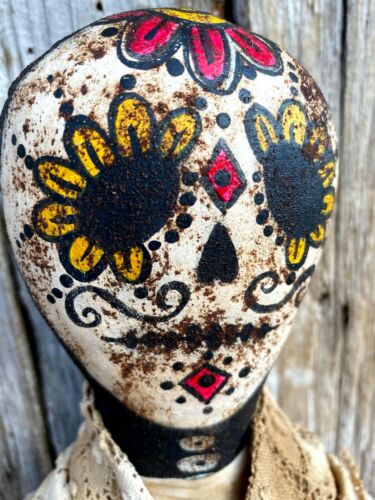 Title (ebay affiliate link): Primitive Folk-Art DAY OF THE DEAD Red Dress Grungy Doll