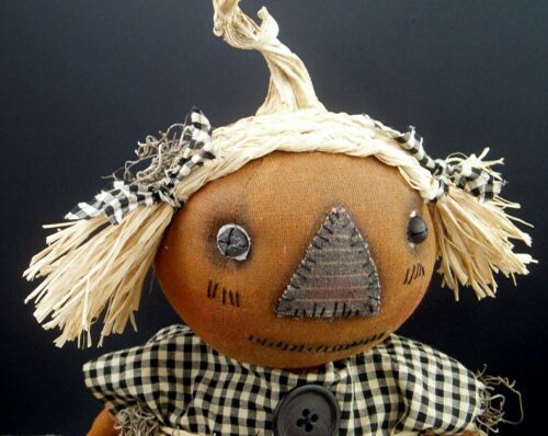 Primitive Folk Art Halloween Fall Pumpkin Scare Crow Cloth Doll Decor