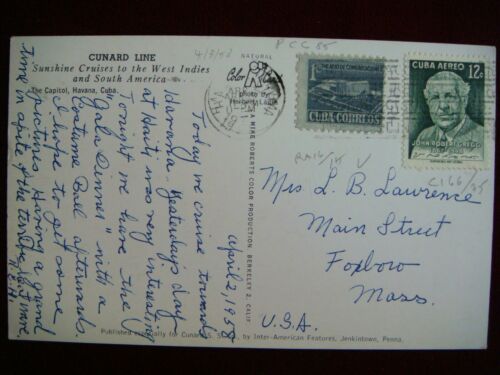Title (ebay affiliate link): CUBA 1958 POST CARD WITH 2 STAMPS CUNARD LINE SUNSHINE CRUISES TO USA VG