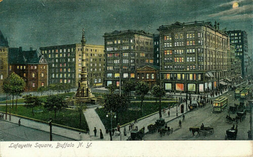 Title (ebay affiliate link): LAFAYETTE SQUARE, BUFFALO, N.Y. NIGHT VIEW. MOONLIGHT. MONUMENT. STREETCARS.