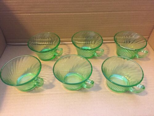 Vintage Depression Glass Green Swirl 6 CUPS with Handle