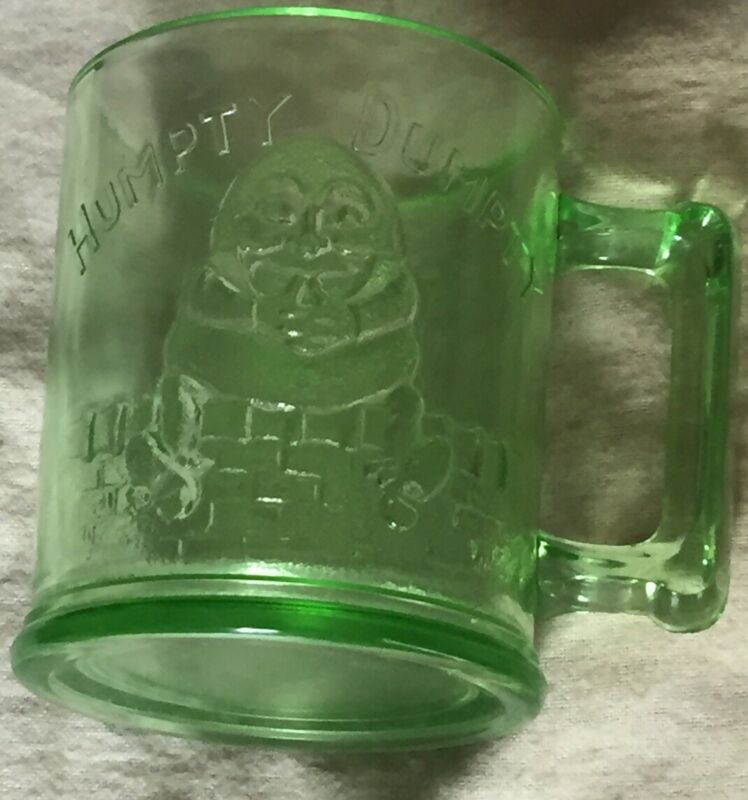 Title (ebay affiliate link): Vintage Green Depression Glass Cup / Mug Tom Tom The Piper''s Son & Humpty Dumpty