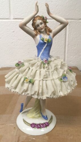 Fine Dresden Sitzendorf Lace Porcelain Lady Dancer Figurine