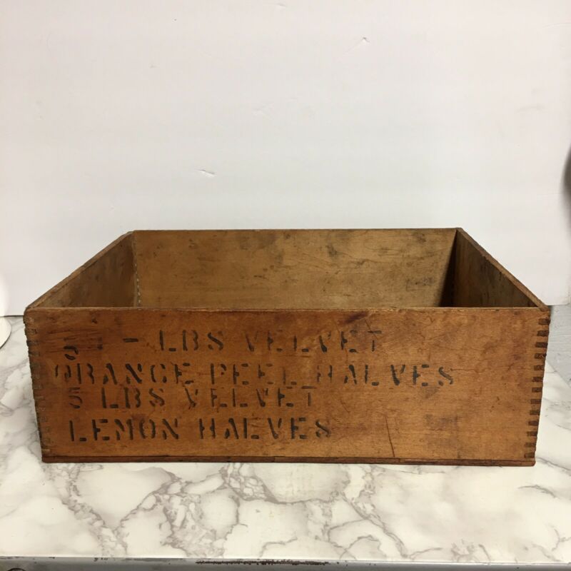Title (ebay affiliate link): Vintage Wooden Fruit Box Velvet Lemons Oranges Dovetailed Crate 13"x 10"x 4.5"