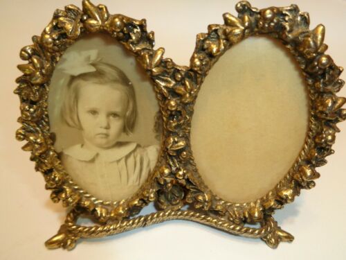 Vintage 1950''s Small Double Picture Frame Ornate Brass