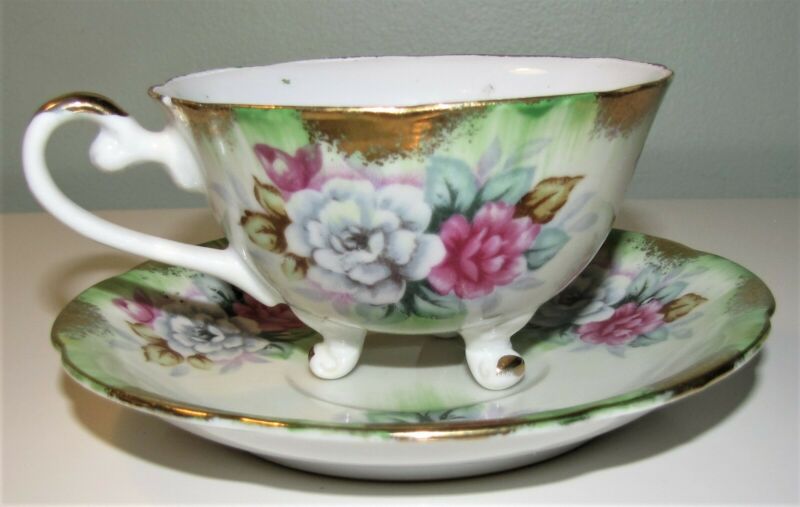 Royal Sealy Japan Footed Teacup and Saucer Set - Flower Pattern