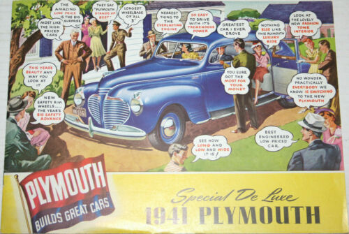 Title (ebay affiliate link): 1941 PLYMOUTH Special DeLuxe Prestige Rev 20 page ORIGINAL sales brochure