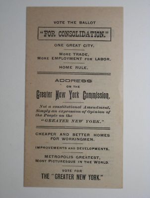 Title (ebay affiliate link): Greater New York Commission Vote for consolidation 1894