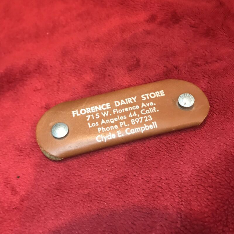 Vintage Leather Key Chain Fob, Florence Dairy Store in Los Angeles, CA.