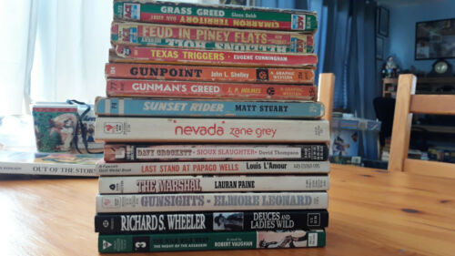 Title (ebay affiliate link): Vintage Western Paperback 13 Book Lot! Elmore Leonard Richard S. Wheeler + More!