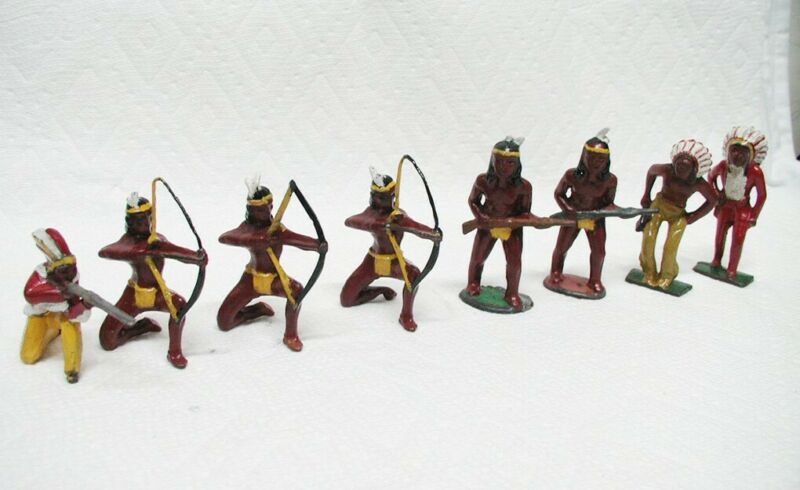 Title (ebay affiliate link): ANTIQUE BARCLAY MANOIL LEAD & CAST IRON TOY NATIVE AMERICAN INDIAN LOT 8Pcs.