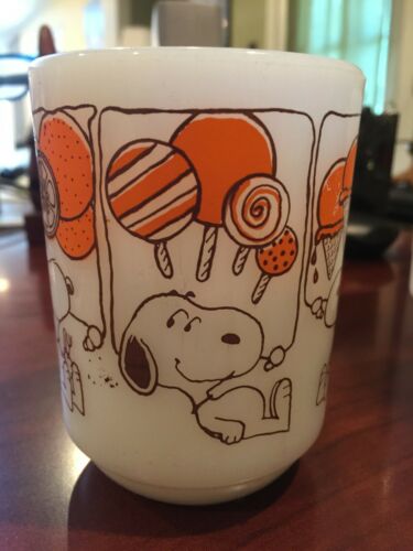Vintage Peanuts Snoopy on Ice Cream Anchor Hocking Fireking Milk Glass Mug
