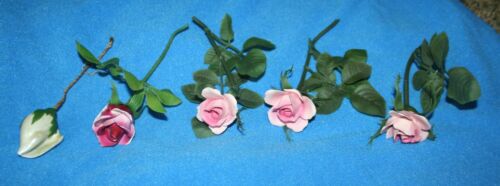 5 vintage ceramic Capodimonte style Porcelain Bone China flowers roses