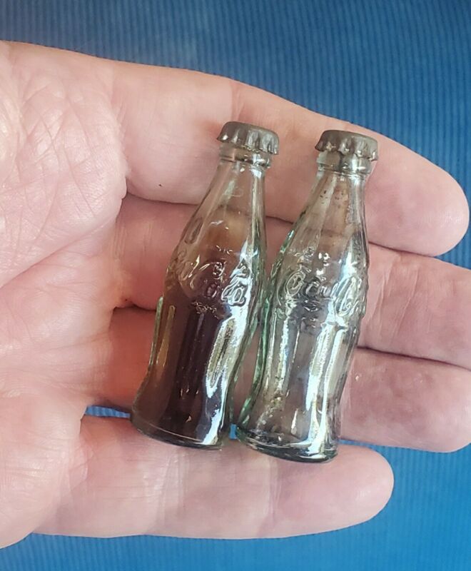 Title (ebay affiliate link): OLD PRE-WAR?? TWO VINTAGE 2" COCA COLA MINIATURE POP BOTTLE ADVERTISING GIMMES