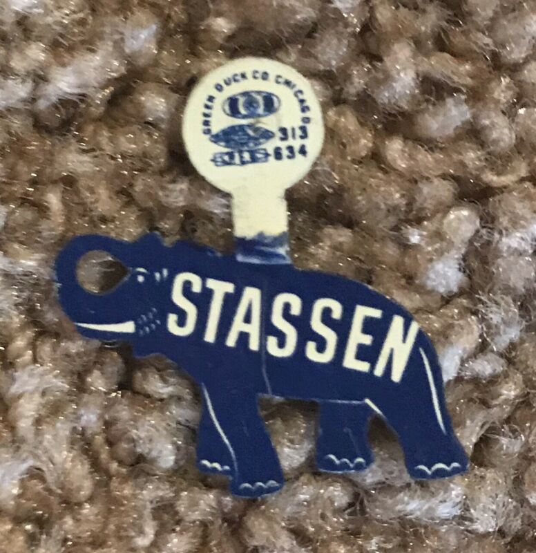 Title (ebay affiliate link): Harold Stassen Presidential President Tab Campaign Pin Back Button 1948 Election