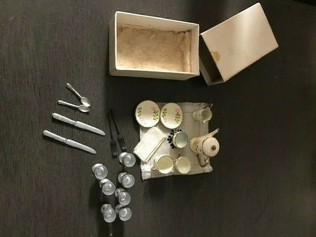 Vintage 40''s or 50''s miniature doll tea set pewter