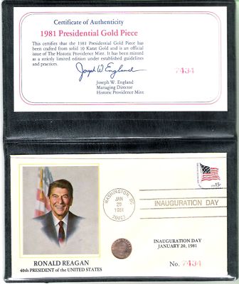 Title (ebay affiliate link): 1981 REAGAN INAUGURATION DAY COVER WITH 10 KARAT GOLD