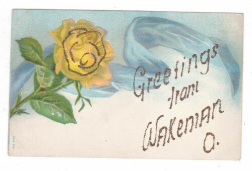 Title (ebay affiliate link): 1910 Yellow Rose Raised Design Embossed Glitter Greetings pc from WAKEMAN, Ohio