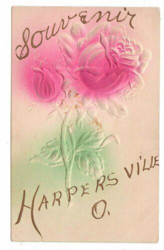 Title (ebay affiliate link): 1909 Pink Rose Raised Design Emb Greetings pc (DPO 1908-1933) HARPERSVILLE, Ohio