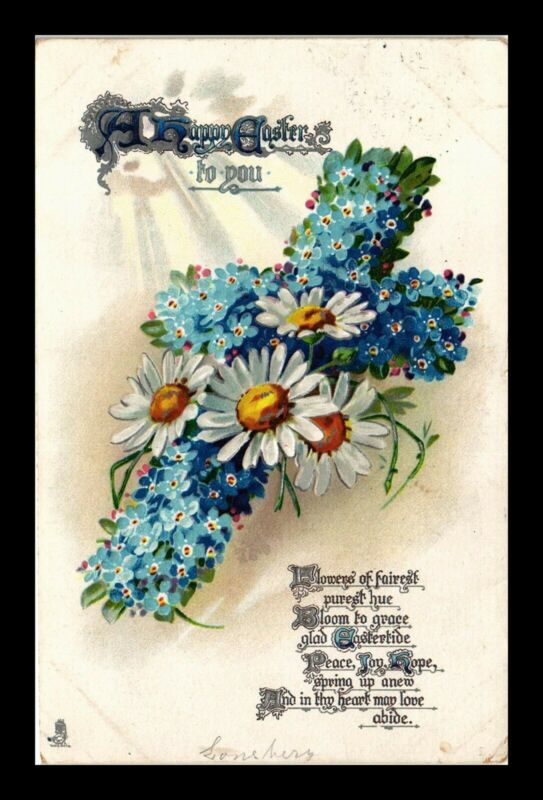 Title (ebay affiliate link): DR JIM STAMPS US HAPPY EASTER TO YOU CROSS FLOWERS EMBOSSED TOPICAL POSTCARD