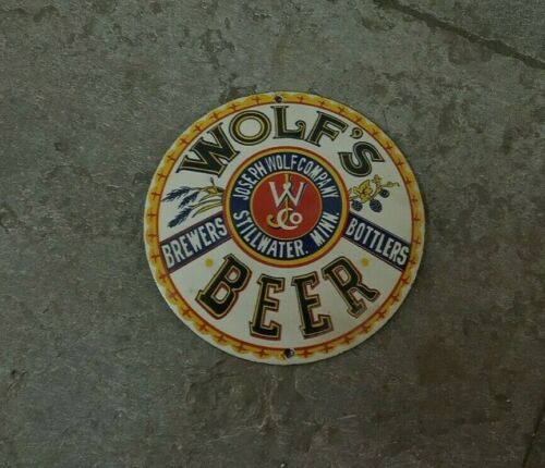 Porcelain Wolf''s Beer Enamel sign Size 6" Inches