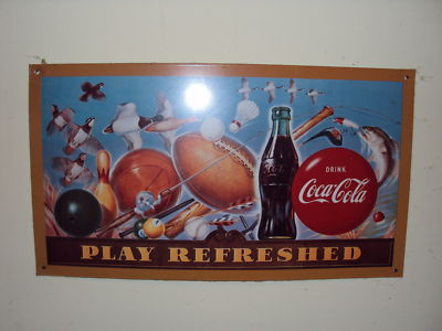 Title (ebay affiliate link): COCA~COLA Collectible Coke Tin Sports Sign