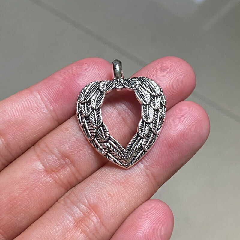 Title (ebay affiliate link): 4pcs 32x26mm Feather Heart Charms Antique Silver Tone Making Jewelry