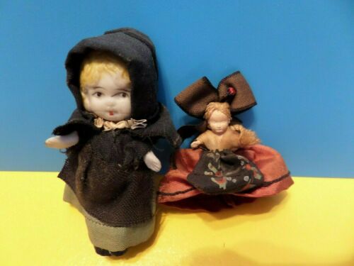 Antique Dolls Miniature German Bisque Blonde Cutie & Tiny Celluloid Doll 1900''s
