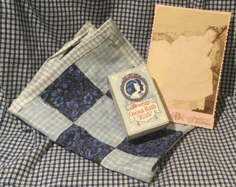 Antique Cabinet Card Photo Victorian Baby Patchwork Doll Quilt Bath Soap Box Lot