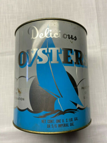 Title (ebay affiliate link): Vintage B & B Oyster Co- 1 Gallon Sailboat Oyster Can - Coles Point VA - Used