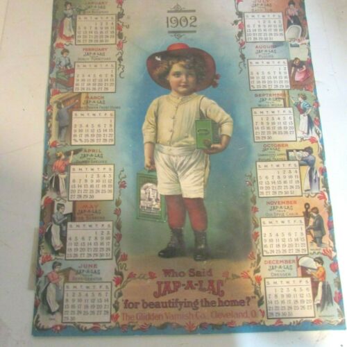 Rare Jap-a-Lac 1902 calendar in color