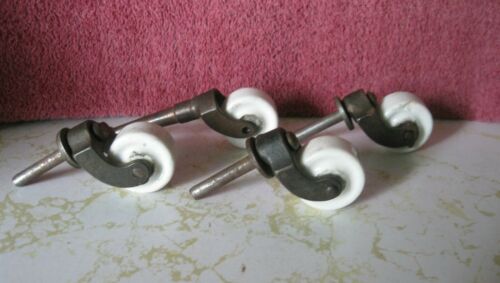 4 ANTIQUE VINTAGE PORCELAIN FURNITURE WHEELS ROLLERS
