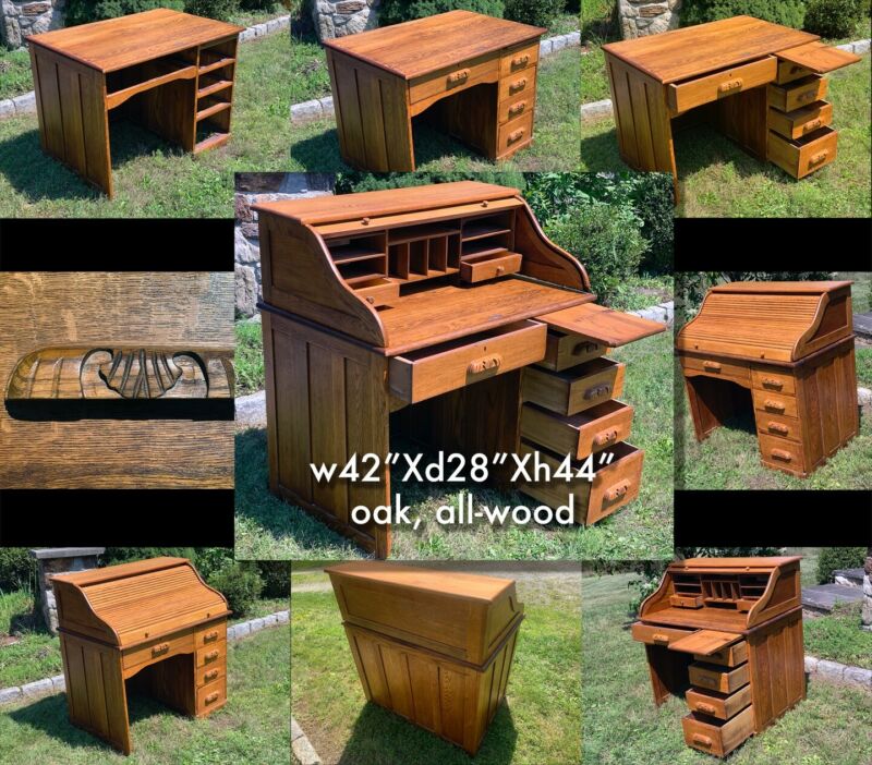 oak roll top desk, all-wood