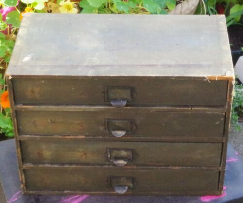 Title (ebay affiliate link): VINTAGE DK GREEN WOODEN 4 DRAWER DESK TOP FILING BOX BRASS HANDLES 15"H x 11"W