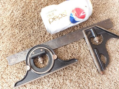 VINTAGE STARRETT MACHINIST SQUARE & ADJUSTABLE PROTRACTOR TOOL 12" RULE