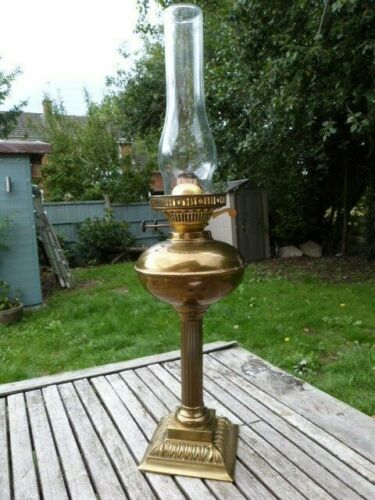 Title (ebay affiliate link): LOVELY VINTAGE BRASS & GLASS CORINTHIAN COLUMN OIL LAMP.