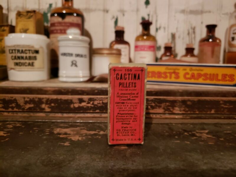 CACTINA PILLETS, OD PEACOCK SULTAN CO, ST. LOUIS, MO, RED LABEL, GREEN BOX