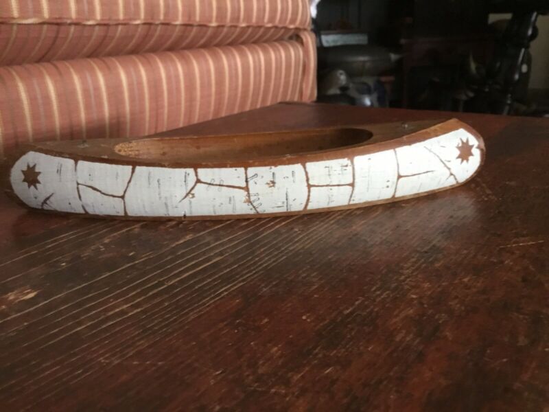Title (ebay affiliate link): VINTAGE SMALL MINIATURE WOODEN PAINT DECORATED INDIAN CANOE