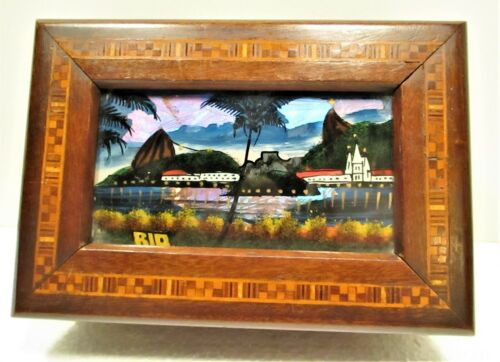 OLDER VINTAGE WOOD BOX W/MORPHO BUTTERFLY WINGS DESIGN OF RIO DE JANEIRO