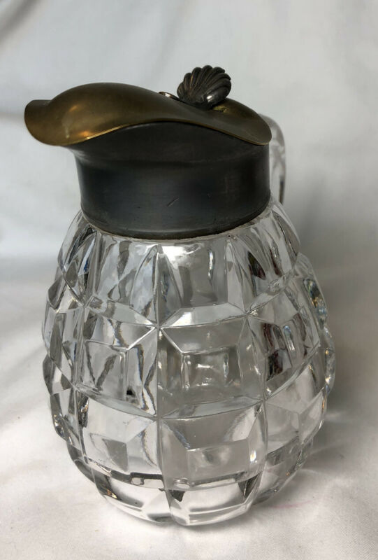 Title (ebay affiliate link): Antique Beveled Glass Creamer Syrup Pitcher Attached Hinged Lid Vintage