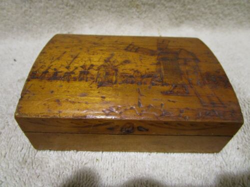 Vintage Windmill Wooden Hand Carved Jewelry Trinket Box