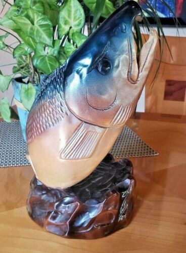 Large Wood Carved Log CHINOOK SALMON Statue 12.5 T X 7*"W