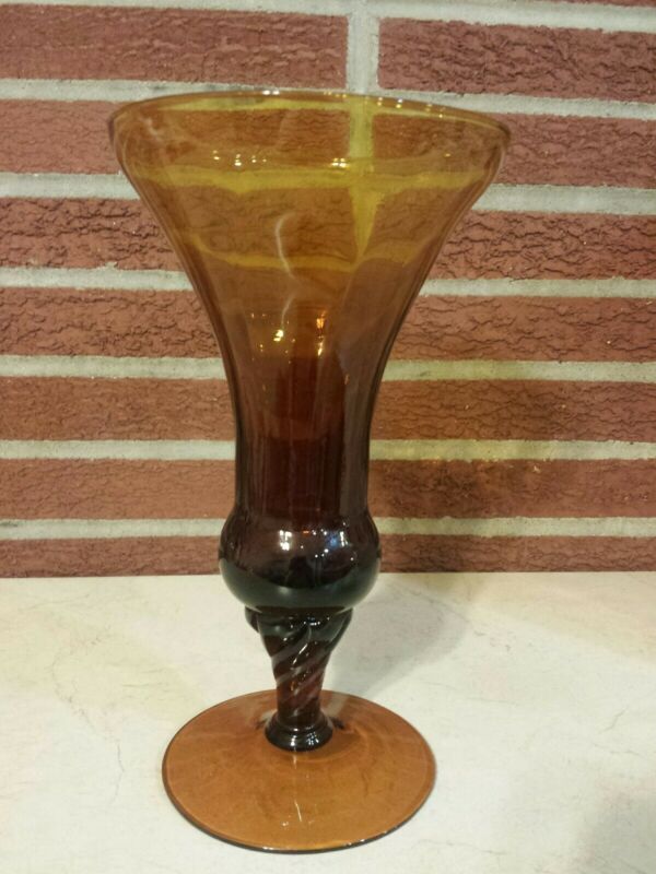 Vintage Amber Glass Vase 9.5" Tall