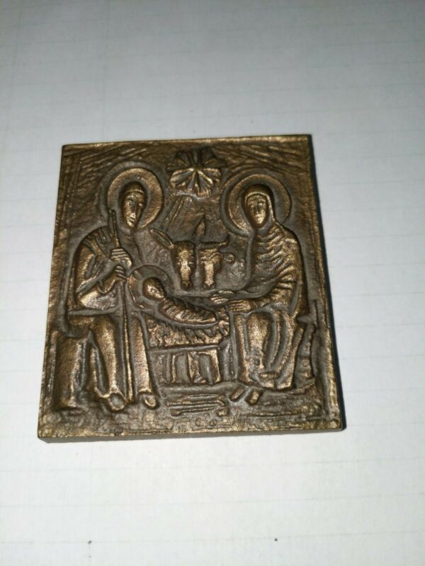 Vintage Bronze Wall Plaque Manger Scene